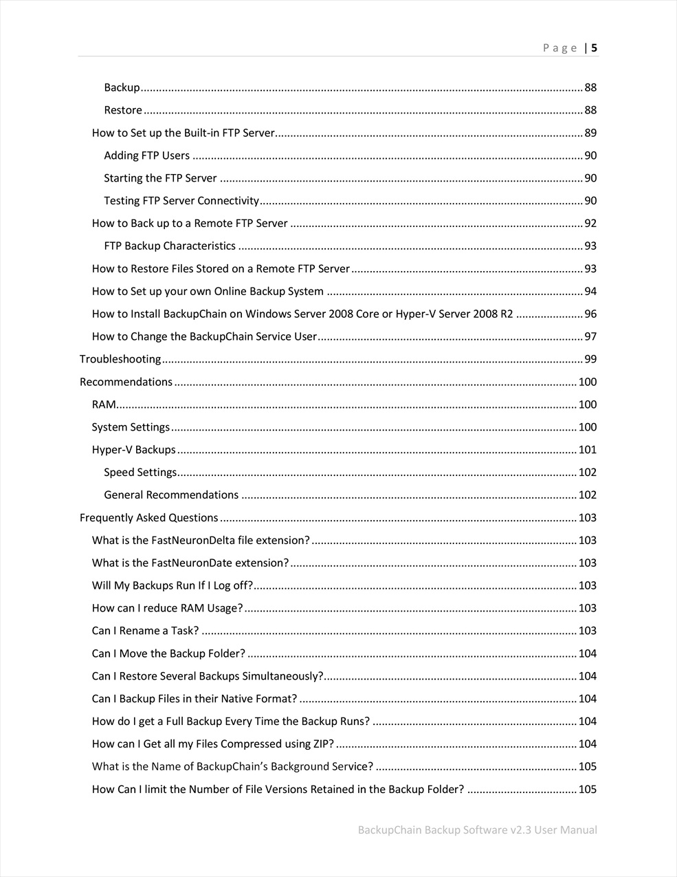 BackupChain User Guide v2.3 Page #5 of 106