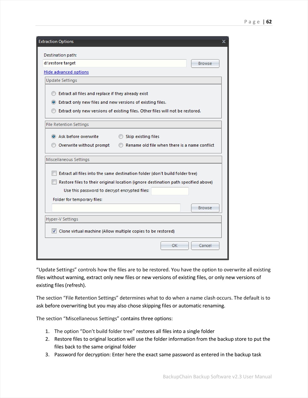 BackupChain User Guide v2.3 Page #62 of 106
